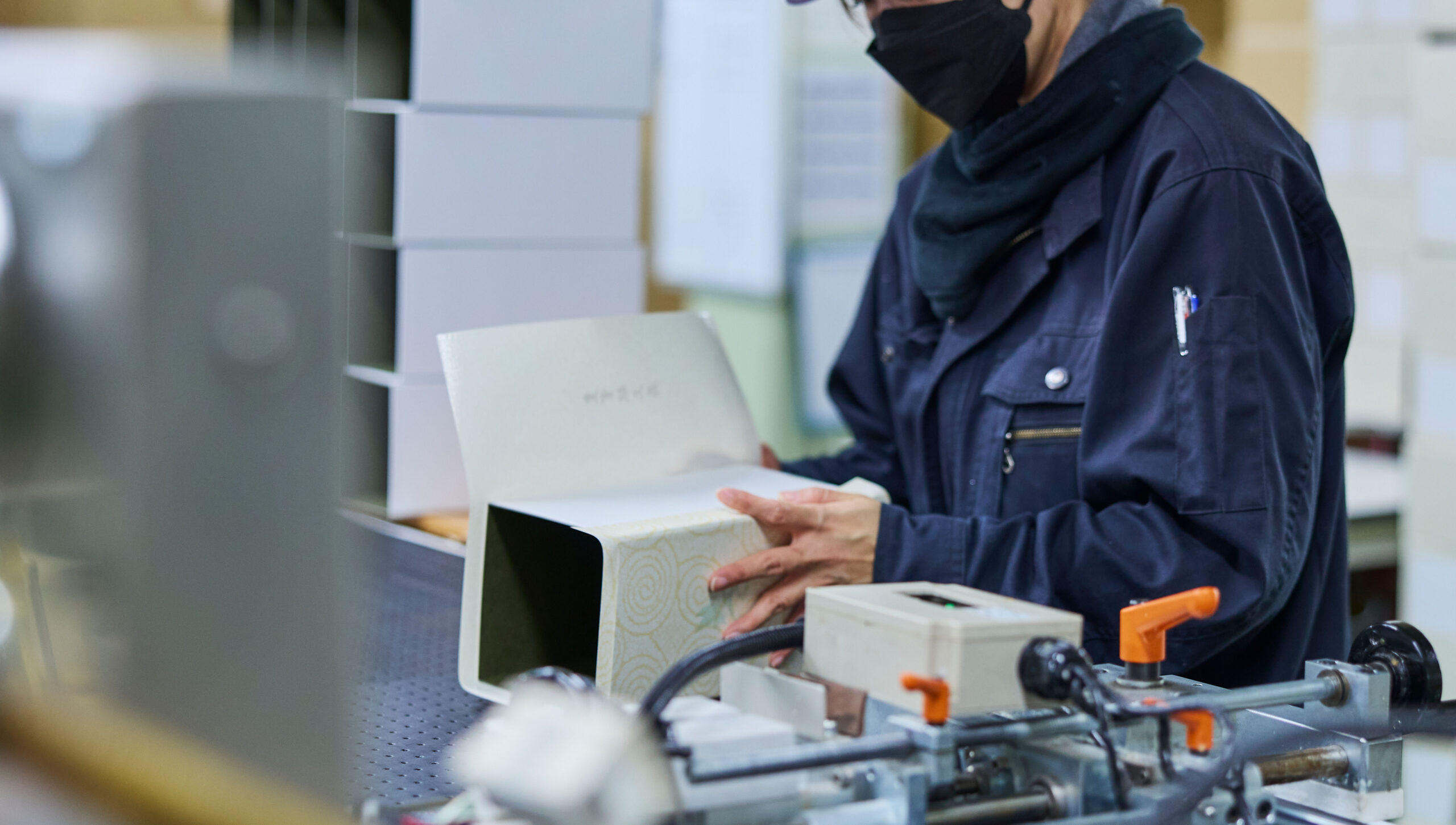 弊社は1935年の創業以来、貼り箱の専業メーカーとして、その歴史を紡いできました。かつては職人の手仕事で作っていましたが、現代では機械化が進み、量産も可能となりました。弊社では、長きに渡って培ってきた感性と、手仕事によって培われた職人力をもって、「貼り箱の進化系」とも言える新しい貼り箱を生み出しています。