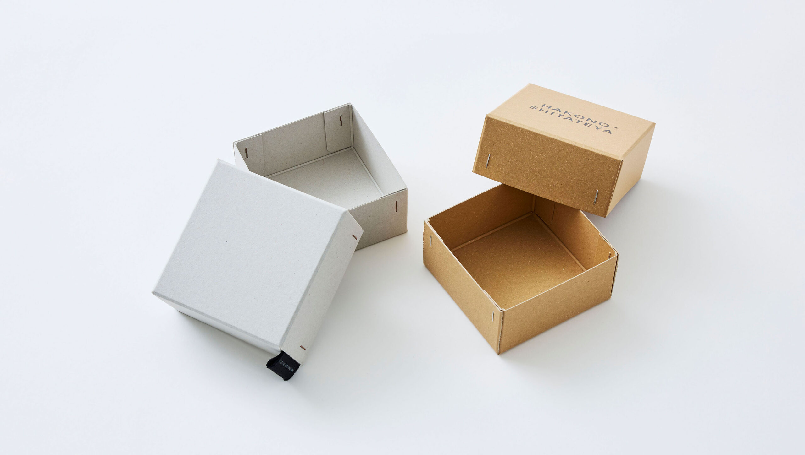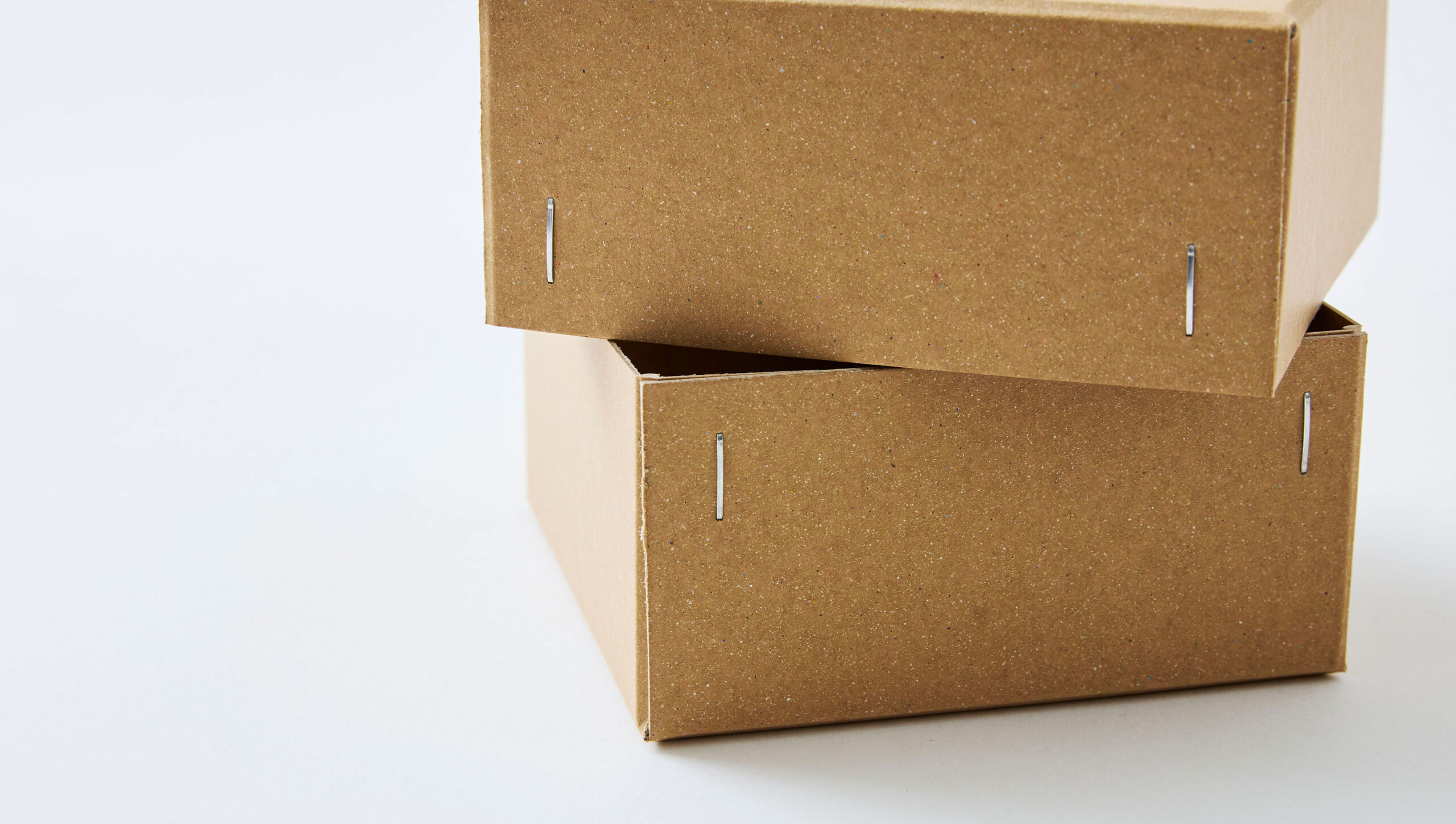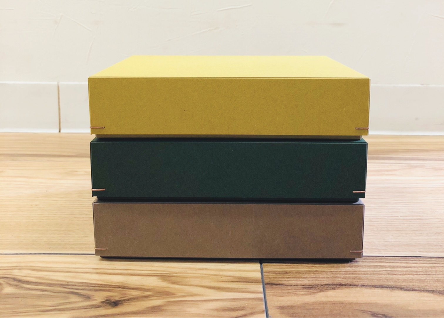 厚紙の四隅をホッチキスで留めたシンプルな箱です。しっかりとした厚みのあるボード紙を使用して作製します。素朴なクラフト感とシンプルさが魅力です。...