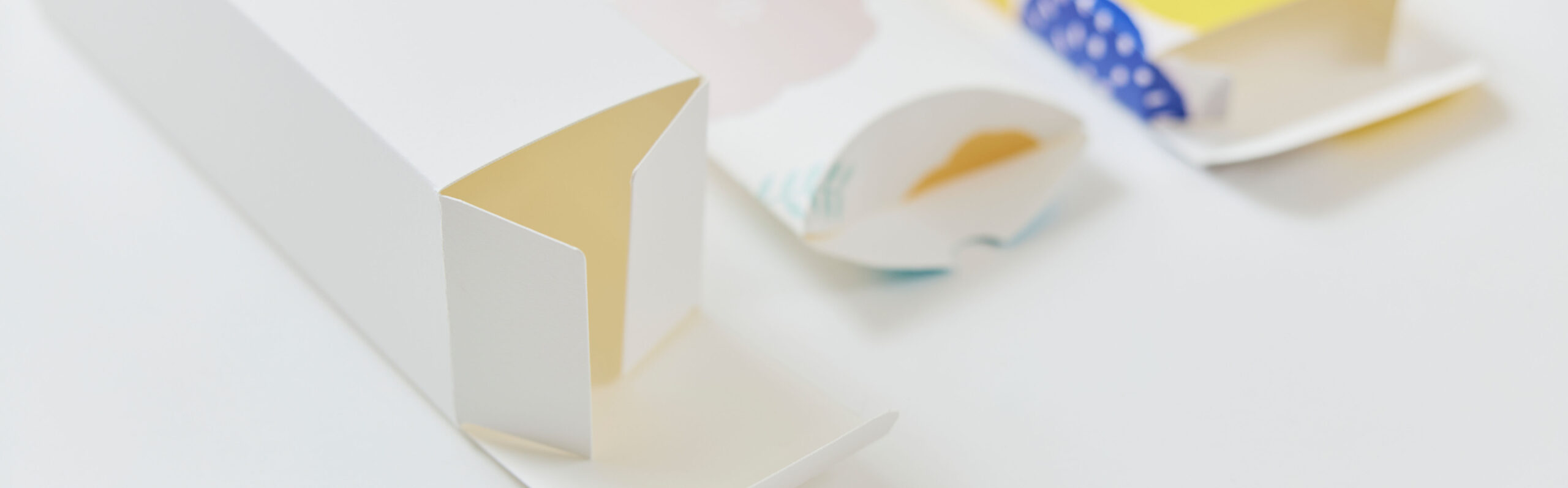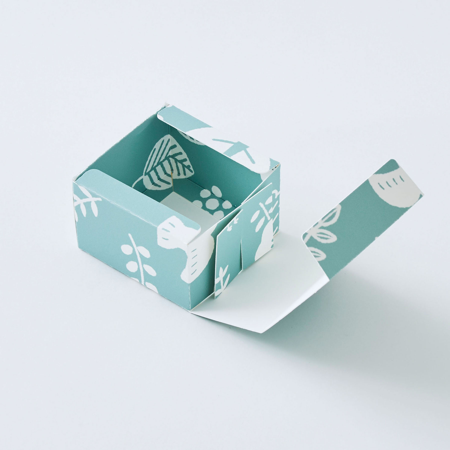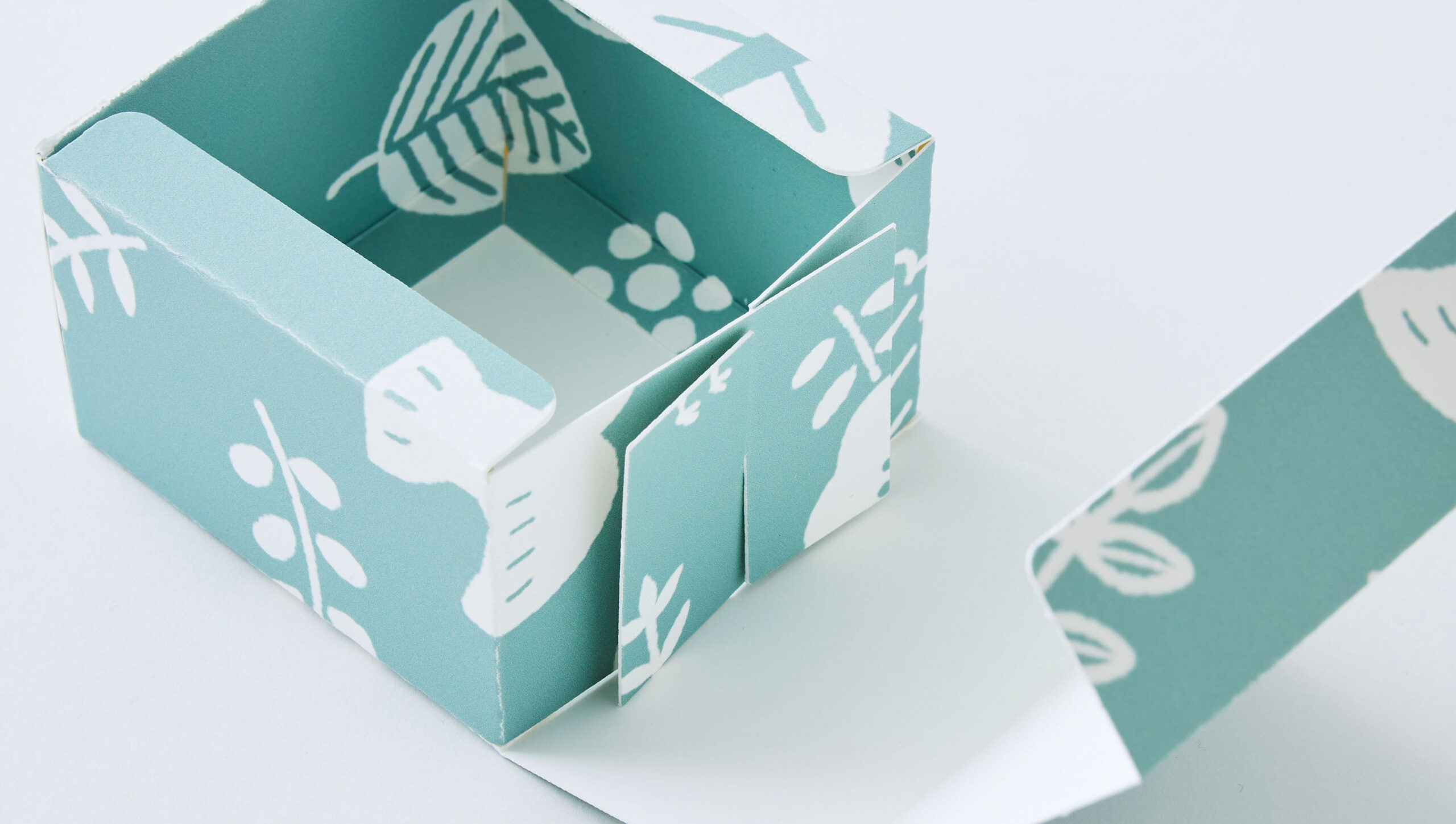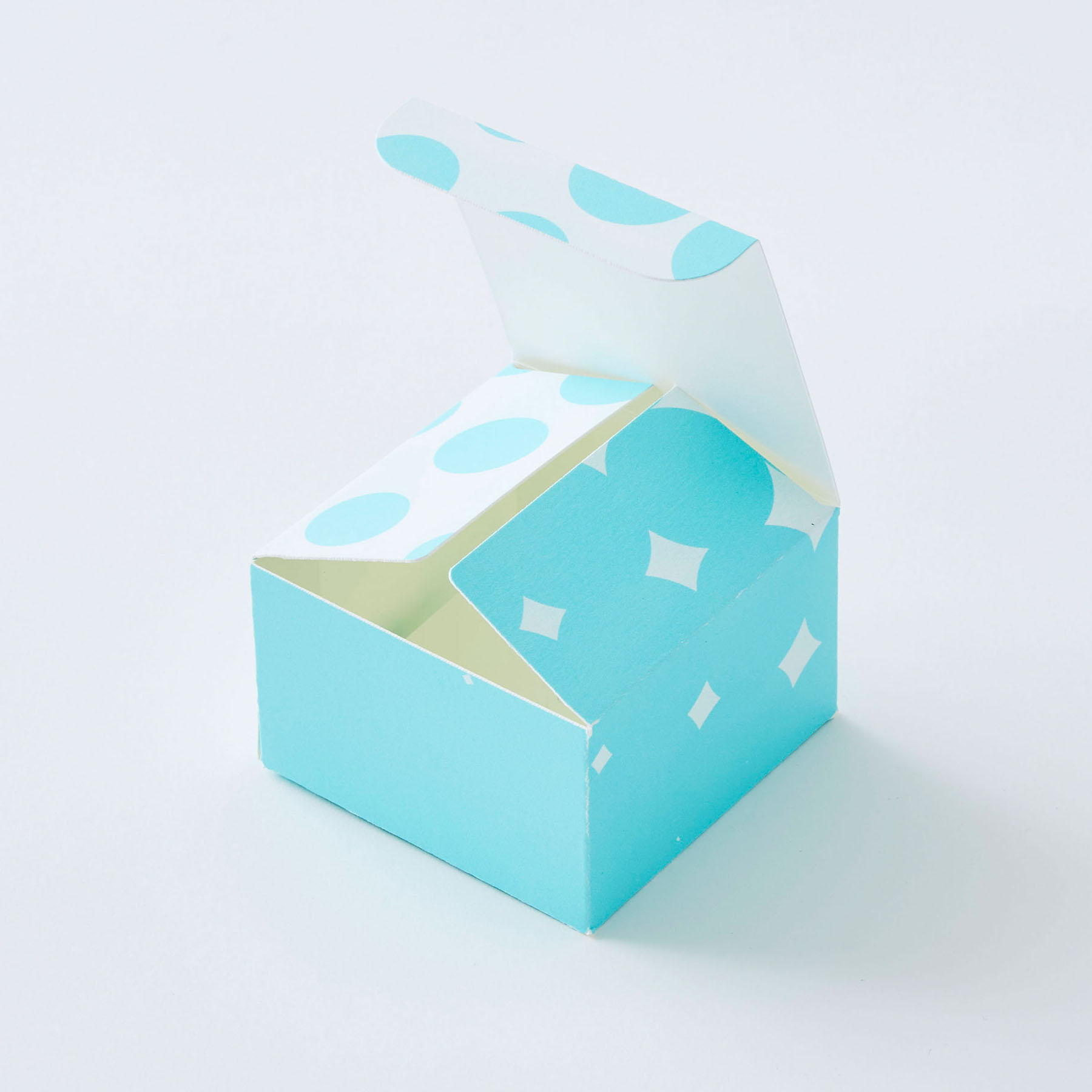1枚の紙を組み立ててつくる箱です。開けやすく、また接着の必要がないので組み立ても簡単です。