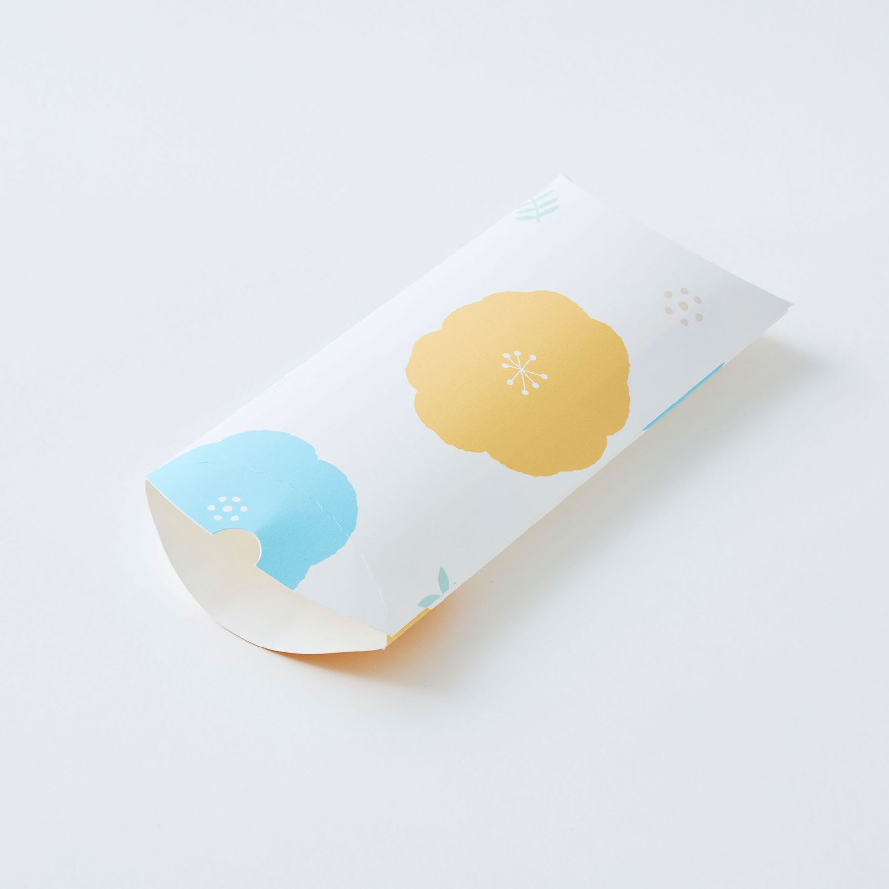 サイドの曲線が特徴的。枕のような丸みを帯びたパッケージです。薄めの紙を用いて作ることが多いので、比較的軽いものにおすすめです。