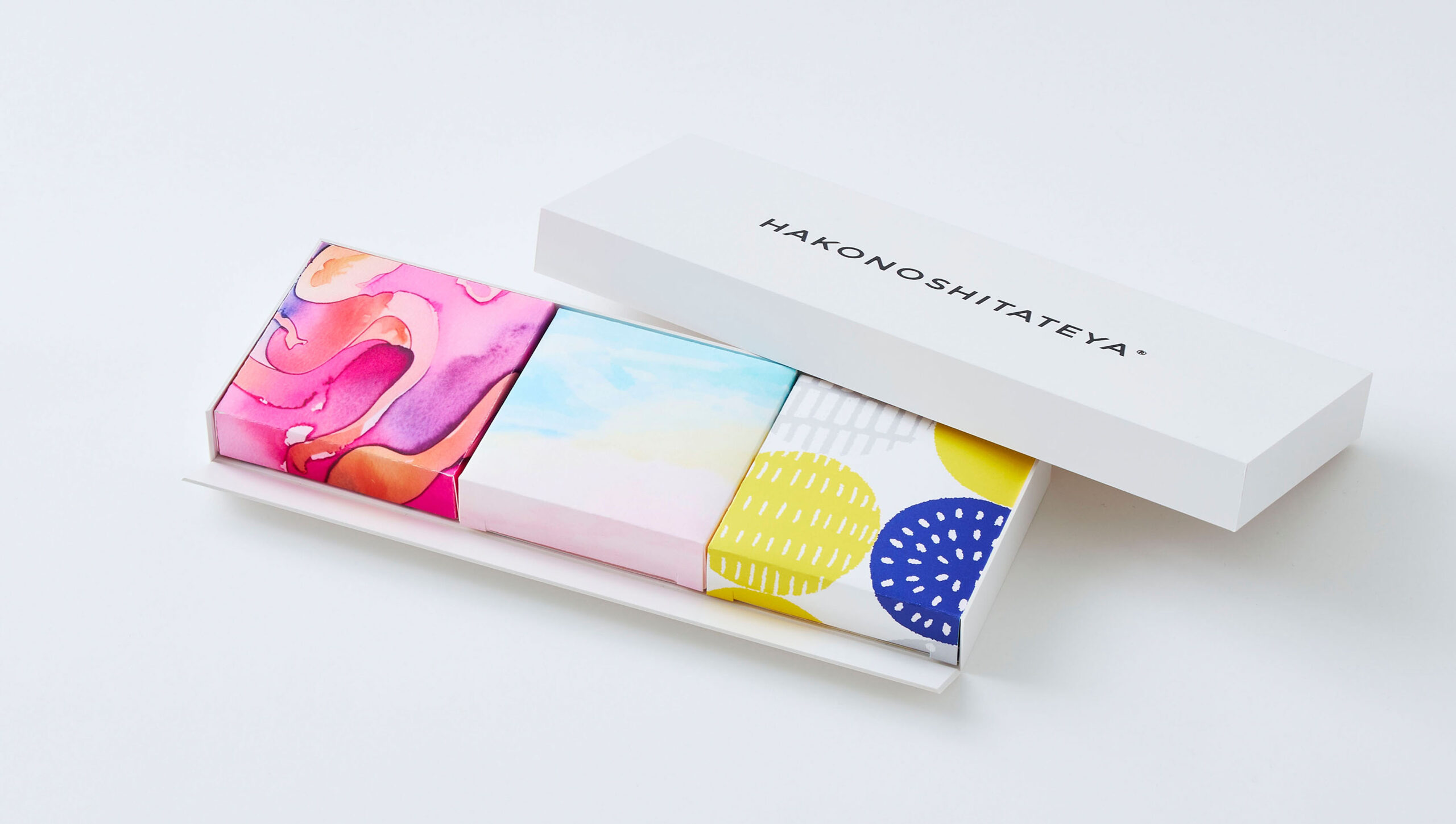 組み立てて使う簡易パッケージを製作しました。底が抜けにくいロック式(地獄底)になっています。組み立前にUVプリントを刷り、全体にデザインが行き渡るようにしてみました。貼り箱だけでなく、こういったトムソンケースも対応しております。どんな形状でもお気軽に...
